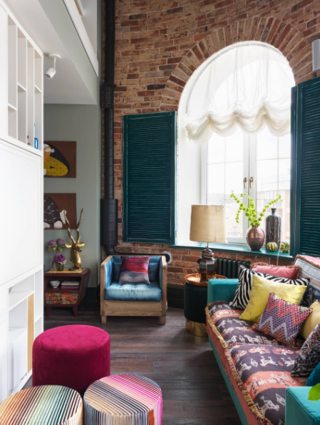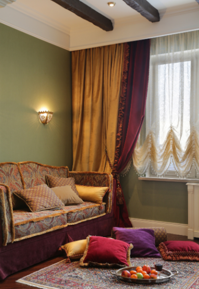 Выбранный цвет штор позволяет создавать объемы, обыгрывать другие оттенки и расставлять акценты.