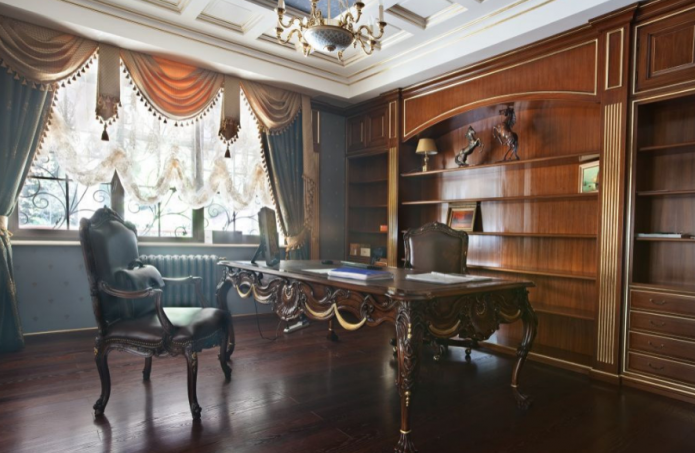 Придадут некой торжественности всему рабочему помещению. Такие занавески иногда комбинируют с длинными портьерами для создания завершенного декора окна.