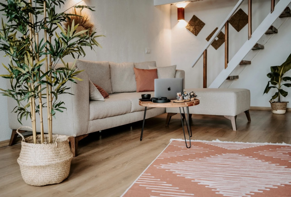 В качестве напольного покрытия из стволов изготавливают паркетную доску: пол из нее прочный, долговечный, обладает высокими показателями устойчивость к износу, воде и влаге, температурным перепадам. Бамбуковый пол стелят даже в комнатах с высокой проходимостью — коридорах, холлах, гостиных.
