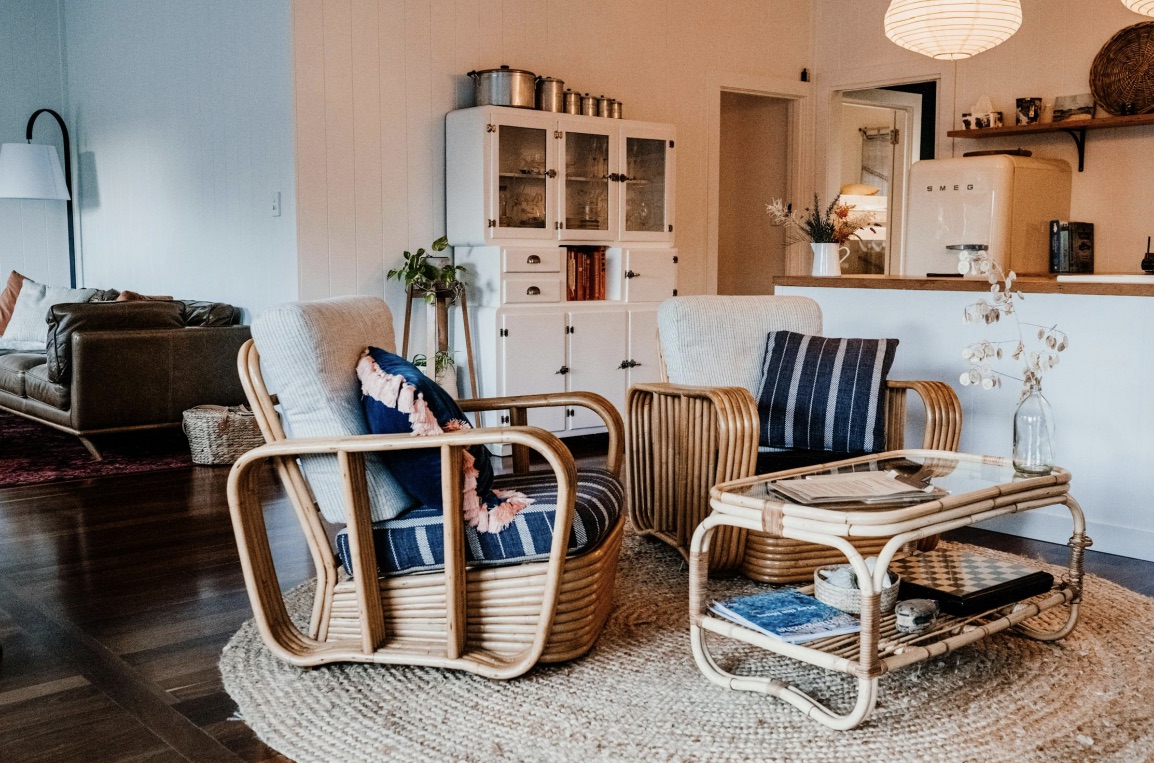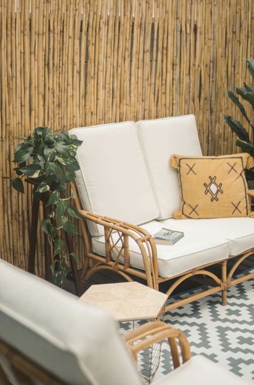 Бамбук в интерьере — вполне самостоятельная единица, особенно если выбрать мебель из этого натурального материала. Столики, кресла, диваны, кровати, стеллажи делают путем плетения палок между собой при помощи плотного джута.