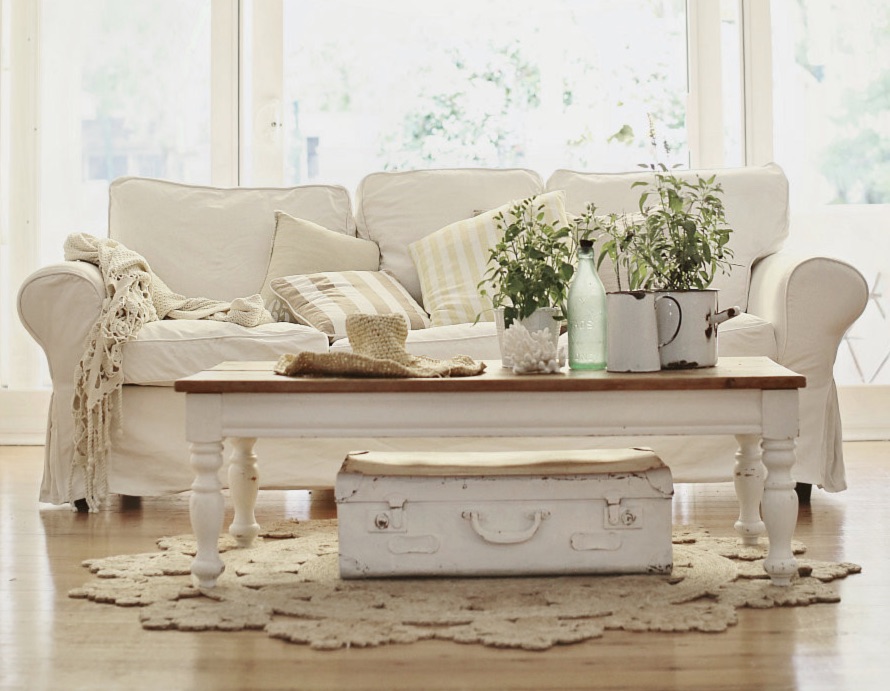 Нежное романтичное направление с легким налетом старины и деревенского уюта. Деревянные элементы могут иметь потертости, это только подчеркнет красоту прованса. Белая обивка может сочетаться с пастельными оттенками или цветочными узорами. Несколько диванных подушек дополнят картину.
