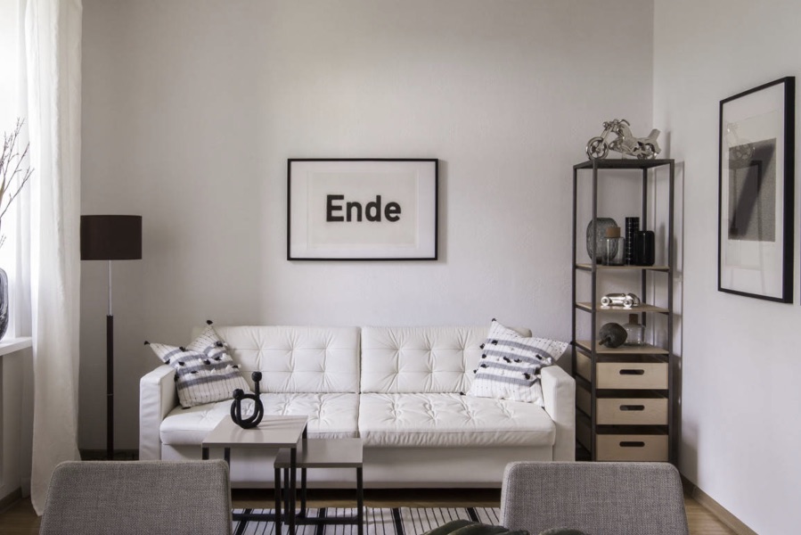 Дизайн в скандинавском стиле наполнен светлыми красками, натуральными материалами и практичными предметами. Белый диван имеет простую форму и прямые линии. Украшением станут несколько декоративных подушек с тематическим принтом или уютное вязаное покрывало.