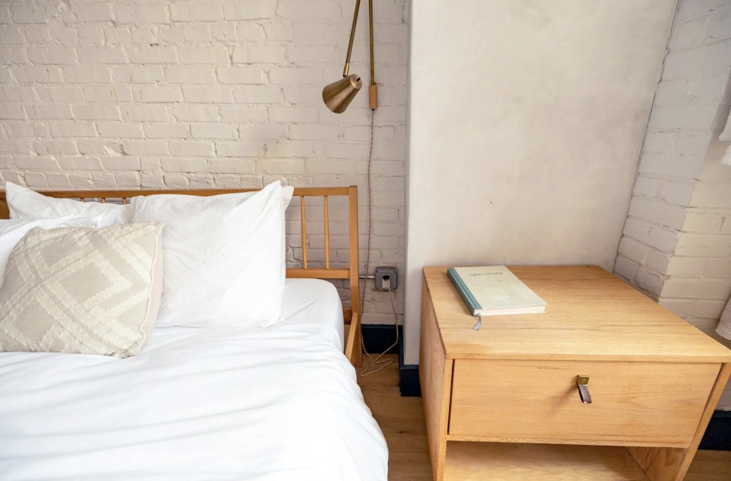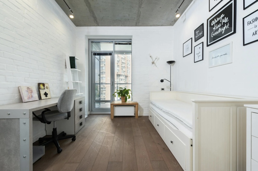 Несмотря на то, что спальня - одно из самых уютных и интимных помещений в квартире, и в ней стена из кирпича белого цвета будет на месте. Обычно им выкладывают стену у изголовья постели, но встречаются и другие варианты. Например, белая кладка поможет зонировать комнату, если спальня совмещена с рабочим кабинетом.