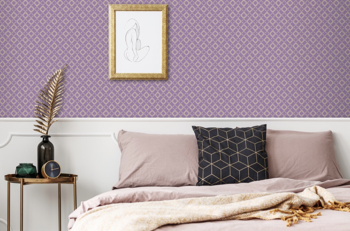 - Фиолетовый для отделки стен нужно использовать при условии, что продуман полный образ спальни. Если же нет уверенности в единстве стиля, то лучше дополнить интерьер спальни сиреневыми элементами (панно, портьерами, ковром, креслом).