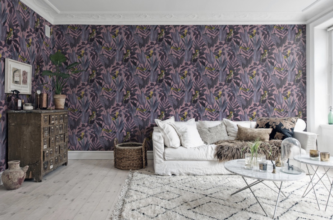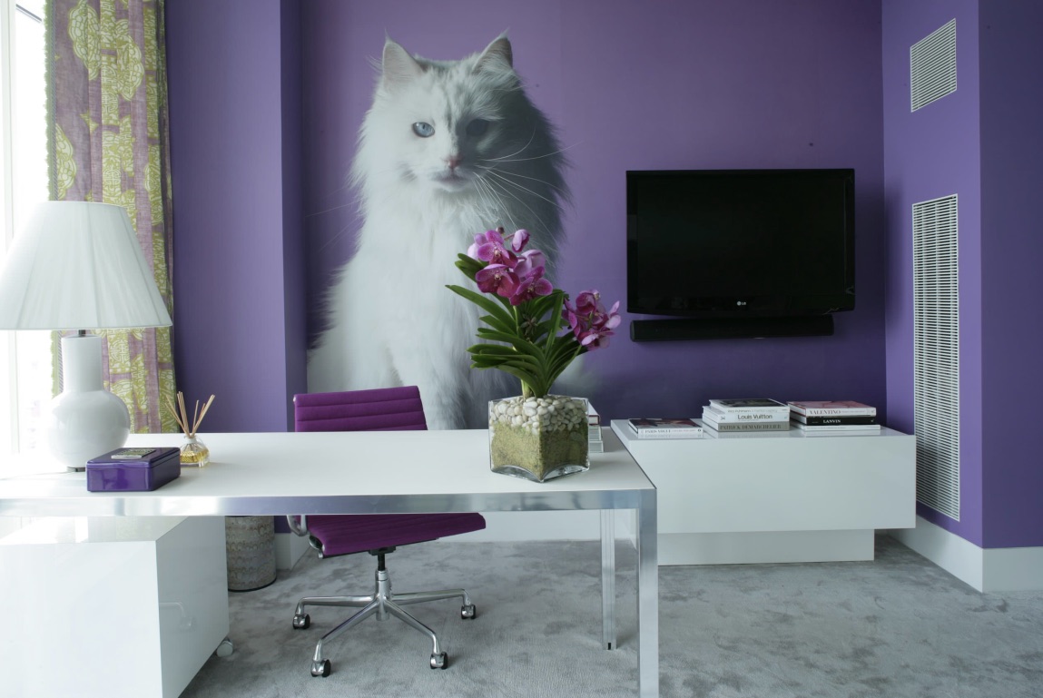 Так как фиолетовые стены в интерьере создают достаточно мощную энергетику и необычный вид, можно украсить комнату текстилем, люстрой, торшерами, лепниной или панно этого цвета. Такой прием поможет присмотреться к цвету и окончательно понять, как он откликается в восприятии пространства.