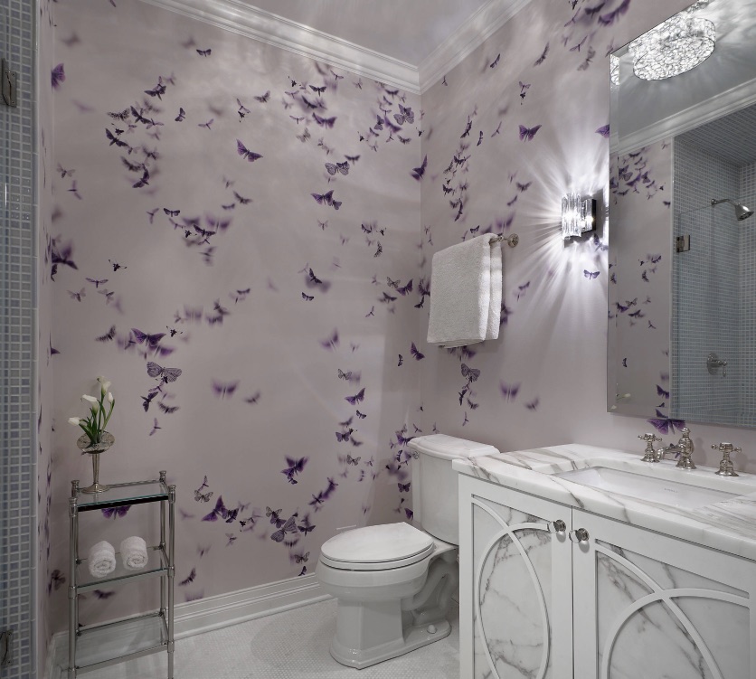 - При хорошем холодном освещении ванную можно сделать полностью лавандовой.
