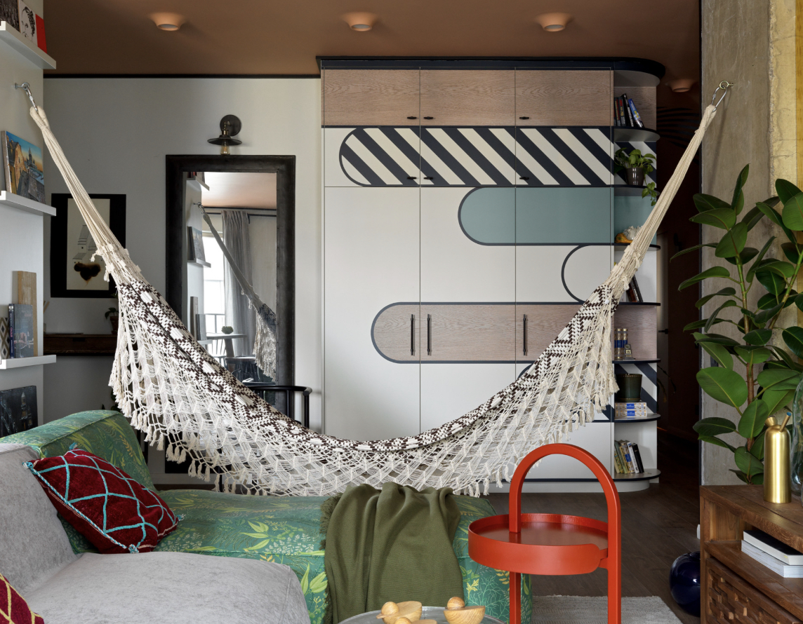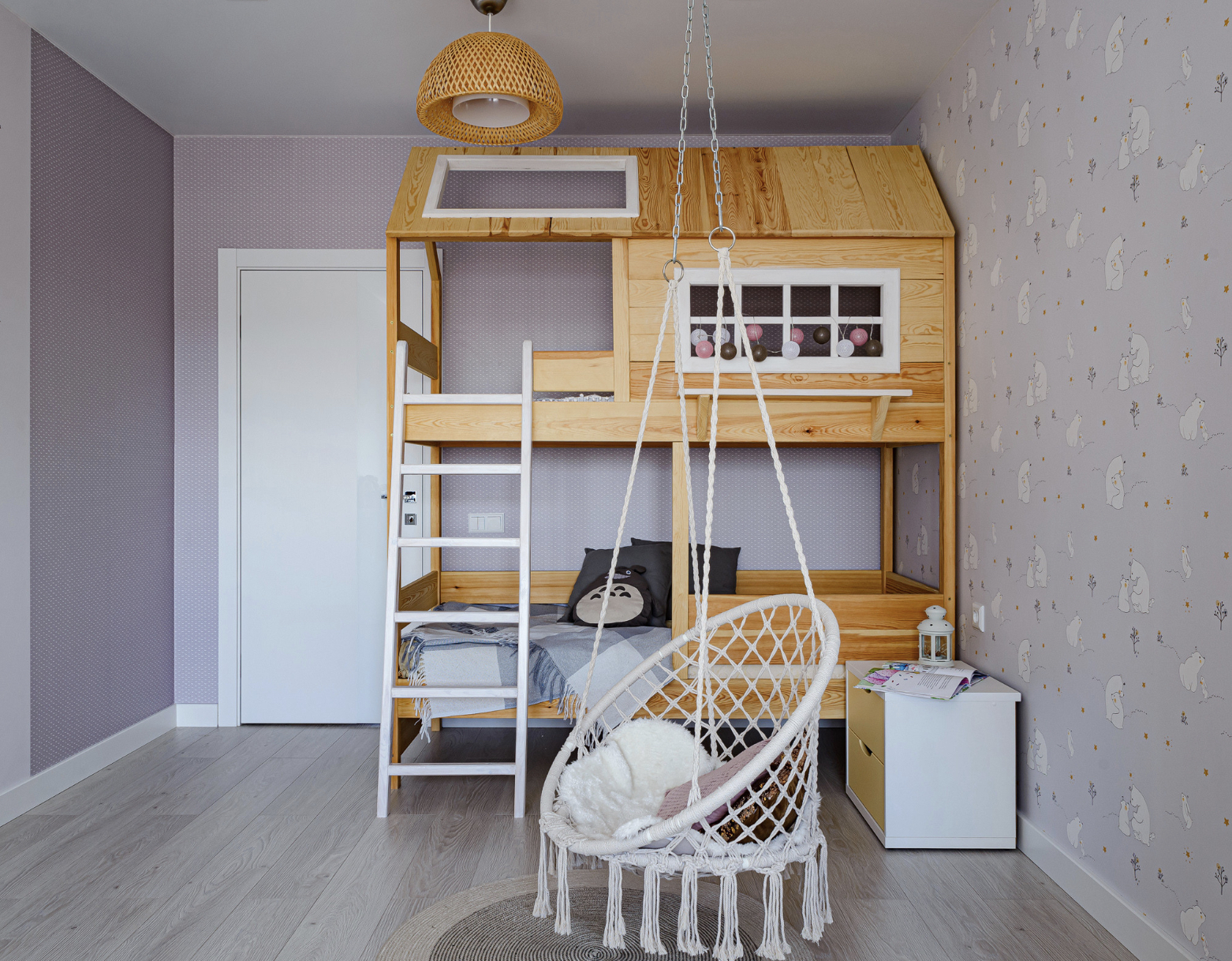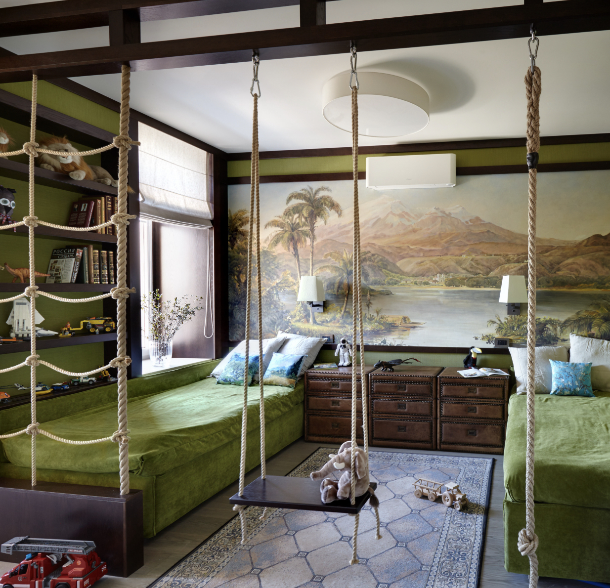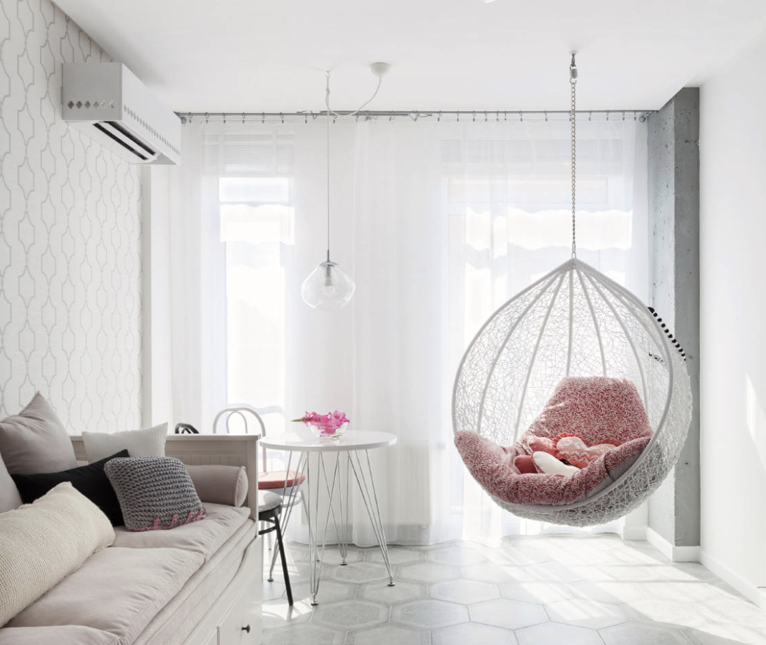 С помощью качелей можно экспериментировать с дизайном и оригинально оформить интерьер квартиры.