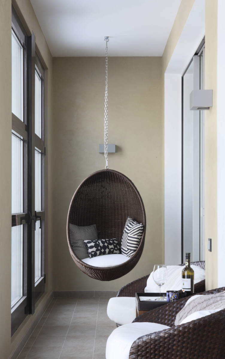 Балкон или лоджию в квартире можно превратить в зону для отдыха, для этого разместите на ней оригинальное кресло-качель или гамак.