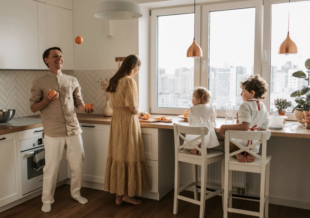 Кухонный подоконник можно с легкостью трансформировать в столешницу или, благодаря его высоте, в барную стойку. Дополните его парой-тройкой подходящих стульев и наслаждайтесь огнями вечернего города за чашечкой чая.