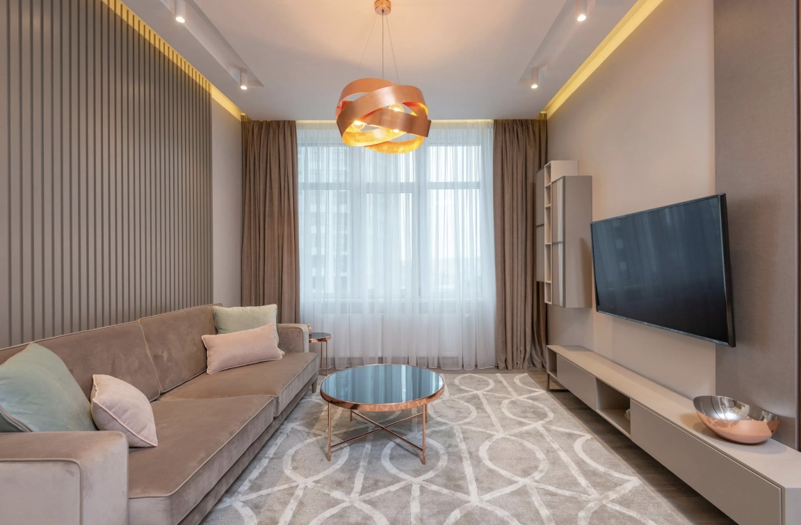 Как правило, это самая большая комната в квартире, поэтому коричневые оттенки в гостиной можно применять без ограничений. Остается только выбрать нужный тон и продумать сочетание с другими элементами обстановки. Так, коричневая мебель на коричневом фоне стен не будет заметна, особенно если их цвет близок по тону и насыщенности.