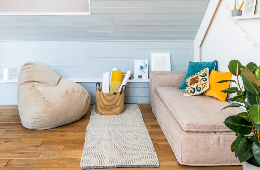 Бин-бэг должен находиться на своем месте и поддерживать общий дизайн комнаты.