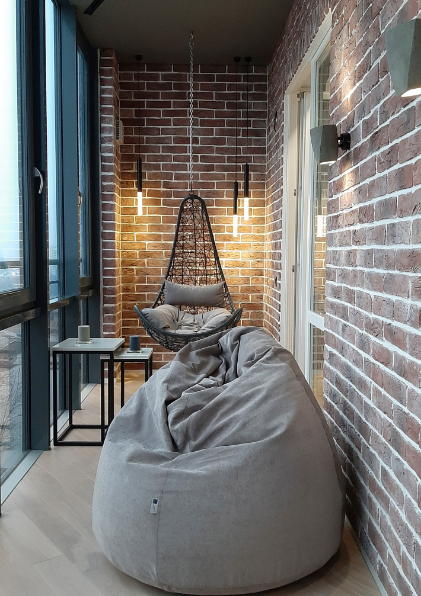 Мобильность кресел-мешков и их комфортабельность делают эту мебель неотъемлемой частью для дизайна балкона. В летнее время наслаждайтесь видами из окна, а зимой — занесите кресла обратно в квартиру.