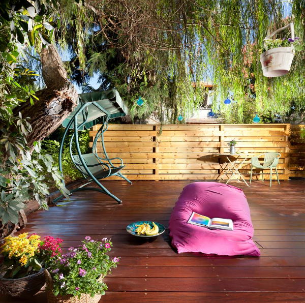 Расположите яркое кресло-мешок около дома на веранде, чтобы создать чудесное место для отдыха на природе. Для загара лучше всего подойдут капли или подушки, на которых удобно лежать.