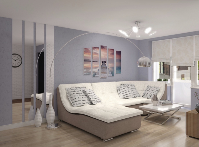 - Маленькое помещение поможет увеличить вытянутая по горизонтали схема размещения модулей;