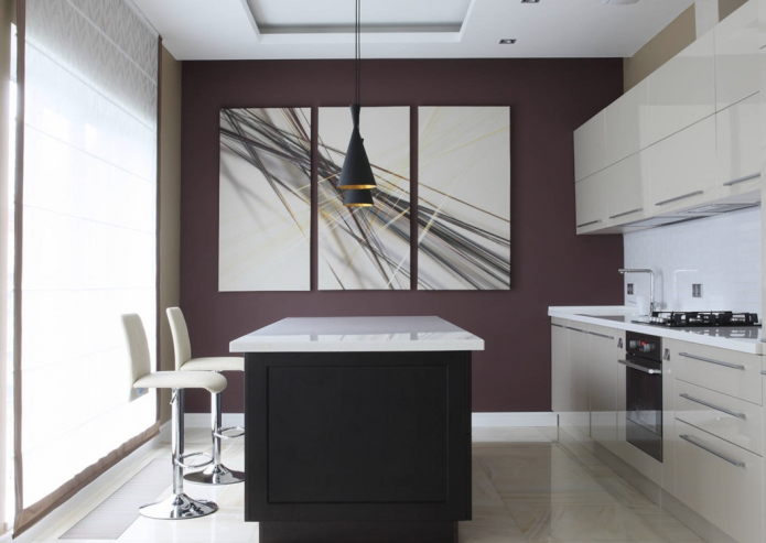 - Рисунок по жанру должен соответствовать стилю интерьера. Исключения допускаются, но должны быть хорошо продуманы. Например, в кухне стиля минимализм уместно будут выглядеть как абстрактное полотно, так и деревенский пейзаж.