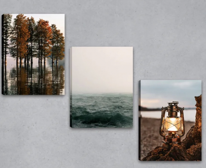 - Крупные, яркие фотографии на картине могут уменьшить небольшую комнату;