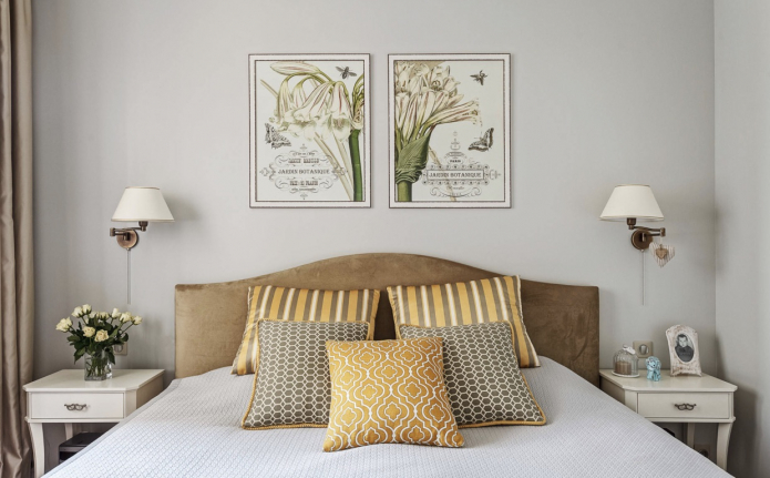 Нежные, пастельные тона, романтичные сюжеты – такими могут быть модульные картины в интерьере спальни. Цветущие поля, отдельные цветы – орхидеи, каллы, маки, или лирические пейзажи – вот самые подходящие «модели» для картины в спальню. Как правило, ее место – в изголовье постели, хотя могут быть варианты. Не стоит располагать модули на стене с окном – смотреть придется в направлении «против света», и картину будет плохо видно.