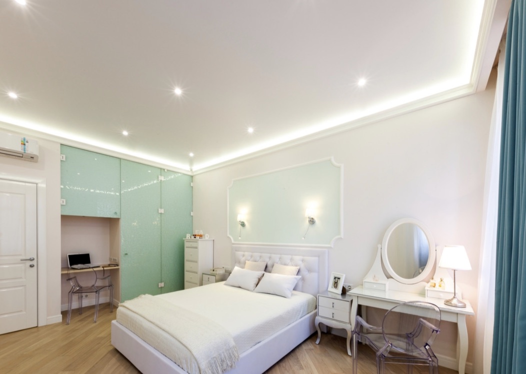 - Для маленьких комнат лучше предпочесть классические глянцевые натяжные ПВХ потолки – они визуально расширяют пространство, отражая свет и предметы.
