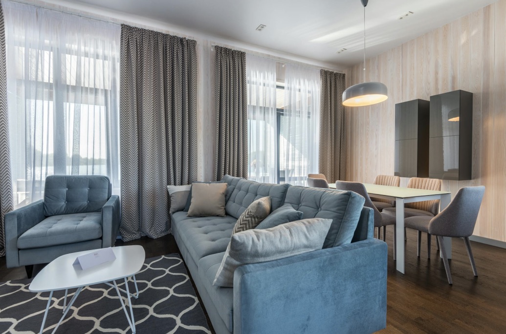 - Голубой. Воздушный, легкий и довольно комфортный оттенок. Он привнесет в помещение уюта и умиротворенности.