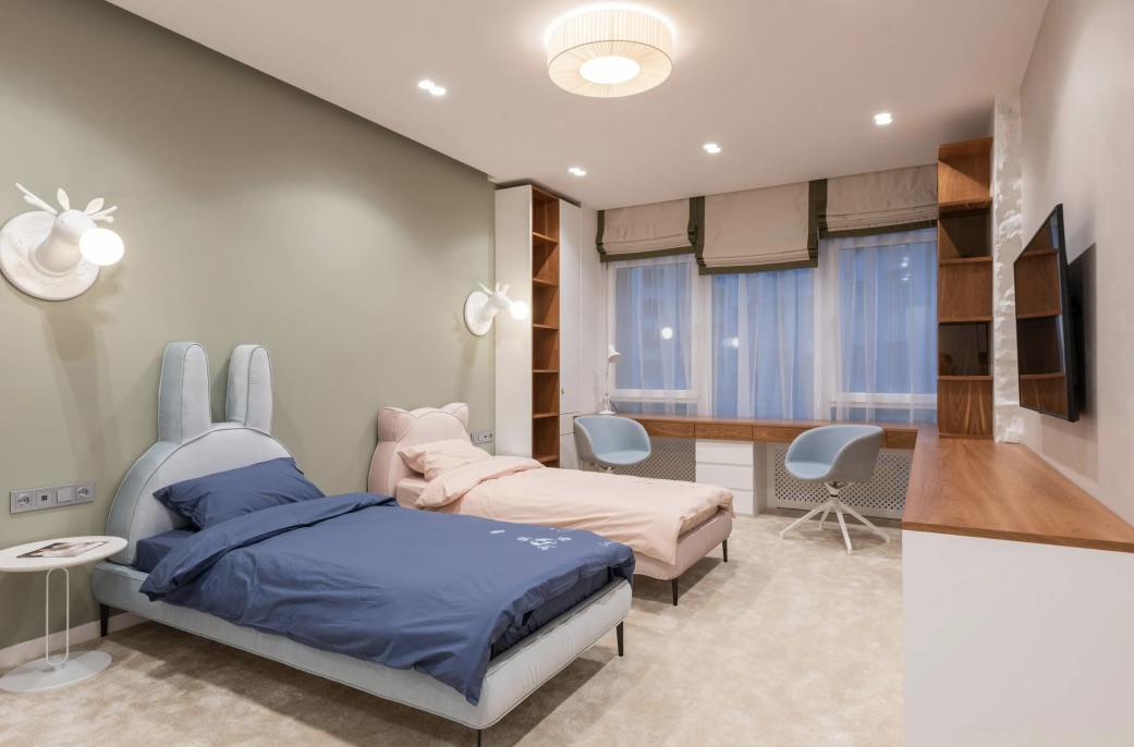 - Зеленый. Ночные портьеры зеленого или салатового цвета сделают детскую более комфортной и уютной, создавая в ней эффект хорошего настроения и тепла.