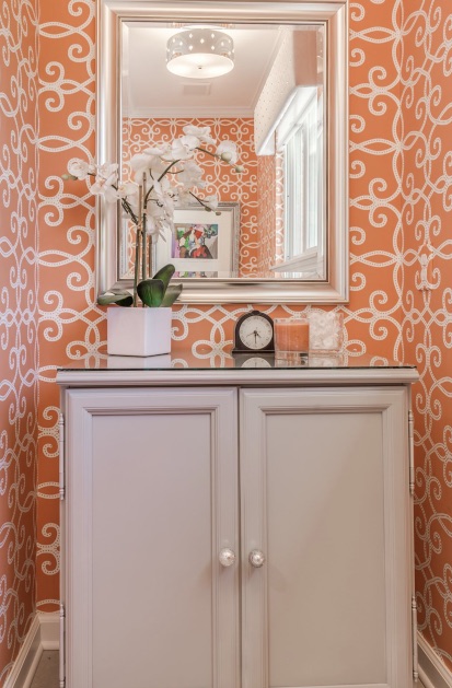- Темно-оранжевые обои подойдут для оформления хорошо освещенного помещения,