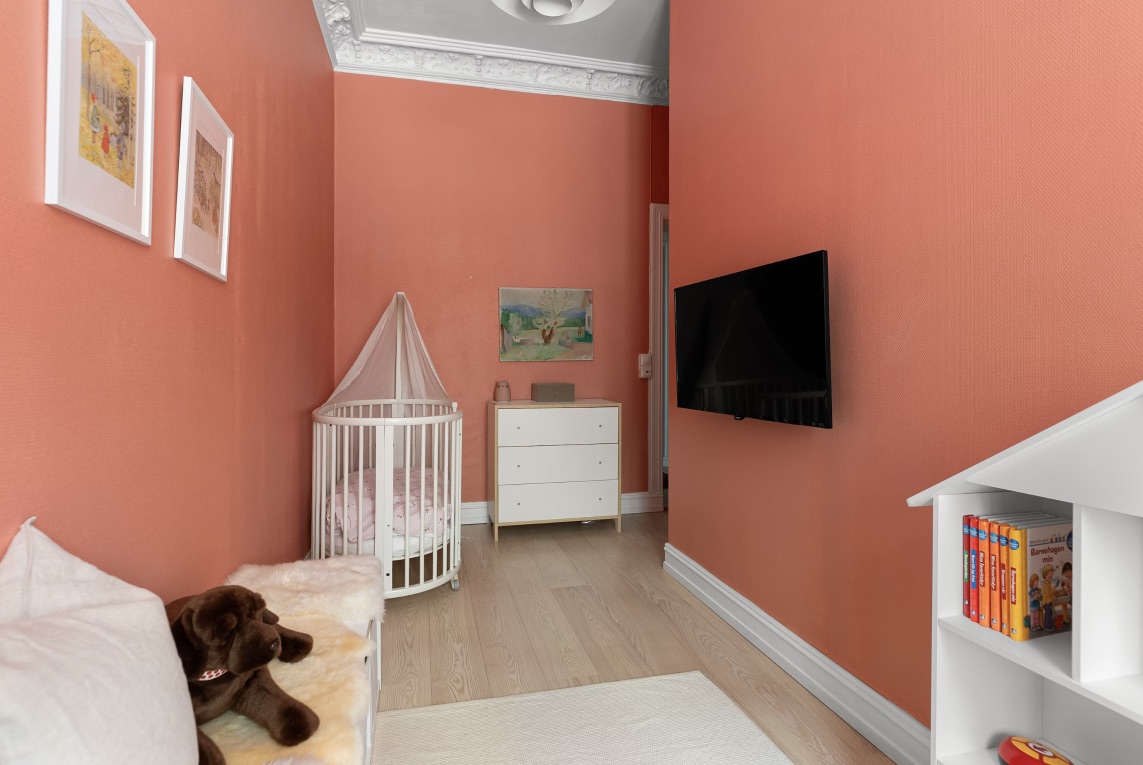 - В комнате с окнами на южную сторону оранжевый цвет не самый лучший вариант, помещение будет слишком ярким.