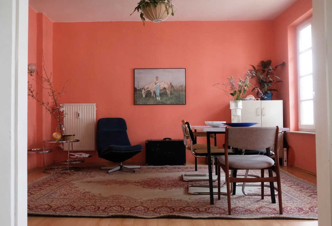 - Коралловый. Нежный розово-оранжевый оттенок, зрительно можно ассоциировать с темным оттенком лососевого. Интерьер получится очень нежным и летним.