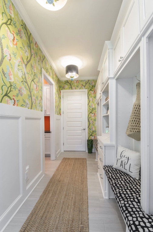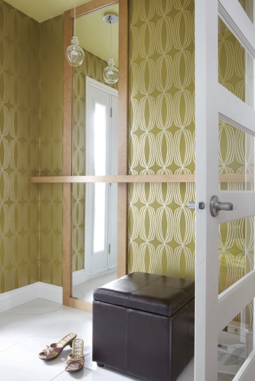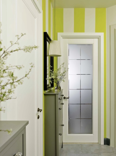 Выбирая яркие стеновые покрытия в прихожую, вы будете получать массу приятных эмоций и чувство непринужденной атмосферы. Засчет салатового цвета в таком маленьком помещении будет всегда светло и солнечно. Визуально расширят пространство и приподнимут потолок.