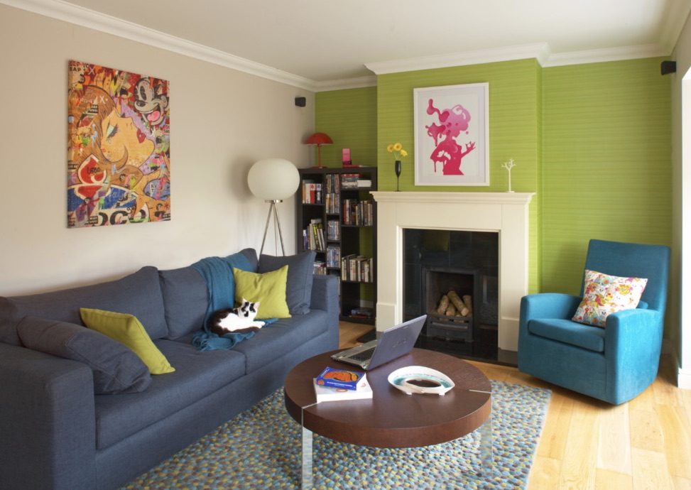 - Для того, что бы ярко-салатовые обои не создавали неуютную обстановку, их следует сочетать с более нейтральными оттенками.