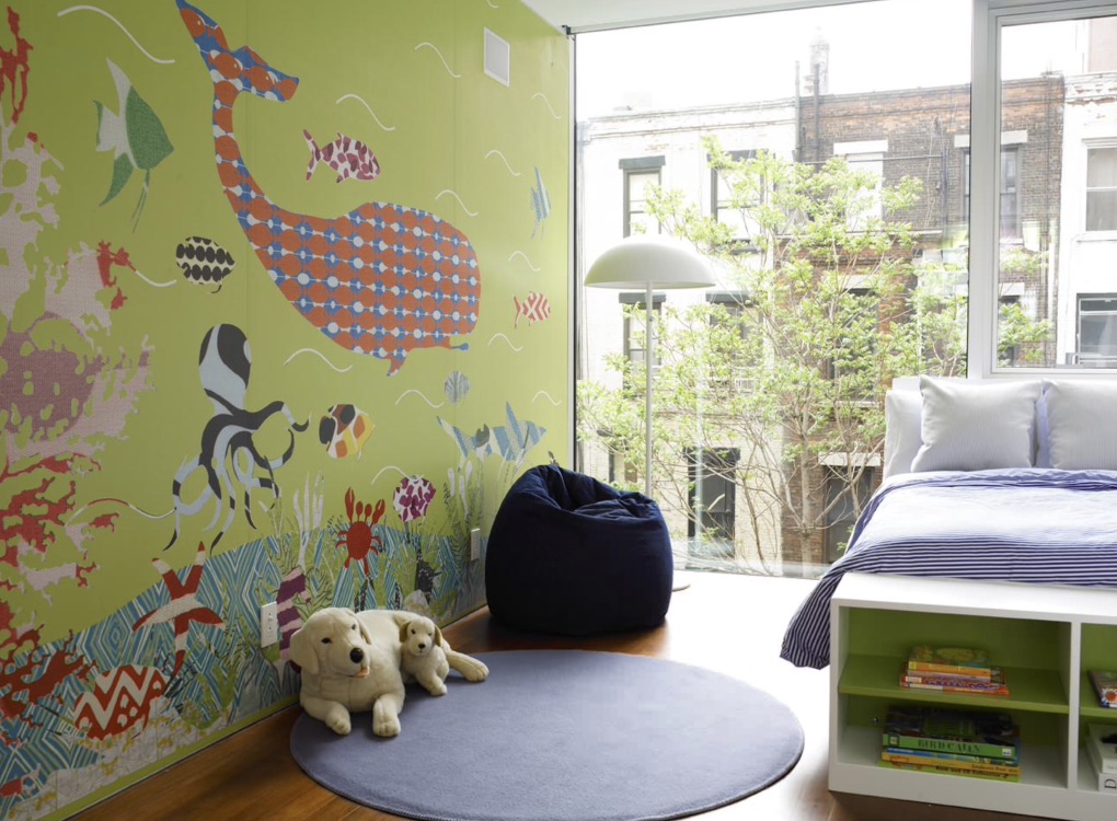 Лучше предпочесть салатовые обои для ребенка со спокойным характером. В интерьер комнаты также можно добавить другие цвета, например: желтый, оранжевый или синий, который ассоциируется с небом и морем.