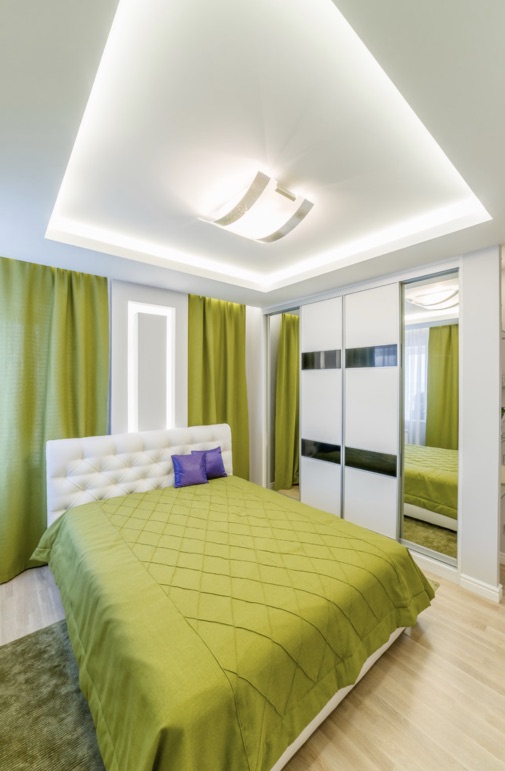 Потолок в салатовых оттенках будет придавать ощущение безграничной свободы на лоне природы. Подбирать лучше светлые, разбавленные оттенки, чтобы не перегружать помещение.