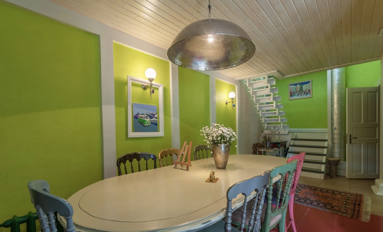 Пол в салатовом цвете не только оригинальная часть интерьера, но и довольно практичная. Мелкие загрязнения на нем не видны, сочетается практически с любыми цветами.