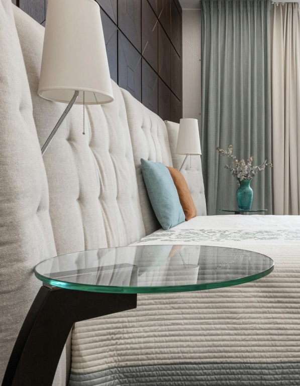 Применение декоративного стекла не ограничивается отделкой: часто в интерьере его используют для создания мебели.