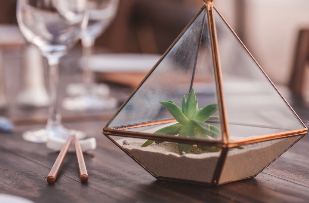 Настольный декор из стекла не менее популярен: вазы, подсвечники, подносы, подставки, статуэтки, даже кашпо для цветов (флорариумы) смотрятся изысканно.