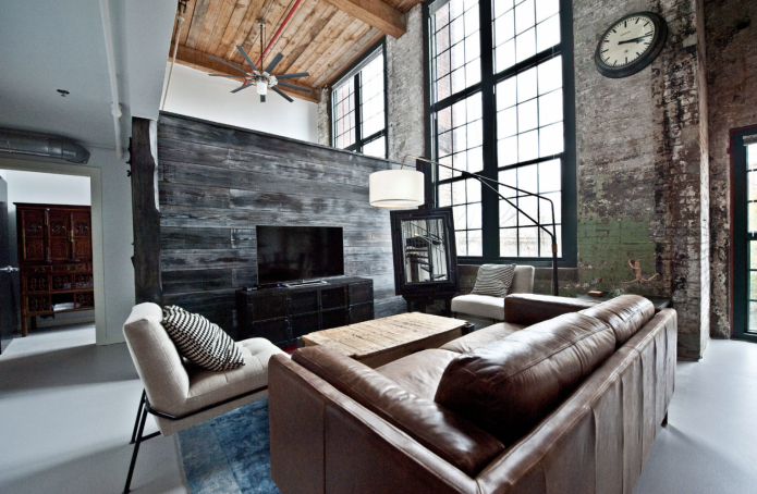 Одним из главных принципов стиля гранж является применение исключительно качественных материалов натурального происхождения. Это может быть кирпич, дерево или камень. Часто в интерьере применяется эффект состаривания фактур, либо необработанные материалы. Например, кирпич без отделки. Дерево используют в отделке стен, потолка или пола. Потолок может быть оформлен грубыми необработанными балками. Стены также могут быть обиты грубой древесиной без покраски естественного цвета. Для выкладки пола подходит камень или керамическая плитка, а также крупный паркет.