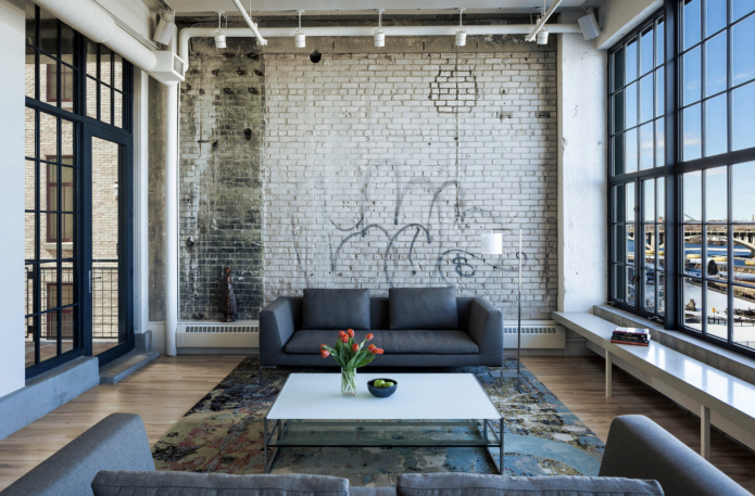 Можно, например, поиграть со светом, подобрав необычные светильники. Это могут быть и классические абажуры или ковка, а также что-то креативное в виде статуэток или фигурок животных. Плед на диване и подушки в тон интерьеру из натуральных тканей сделают комнату еще более уютной и комфортной. А яркое произведение искусства в стиле поп-арт, картина например, станет хорошим завершающим акцентом в гранж интерьере.