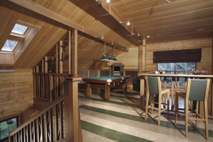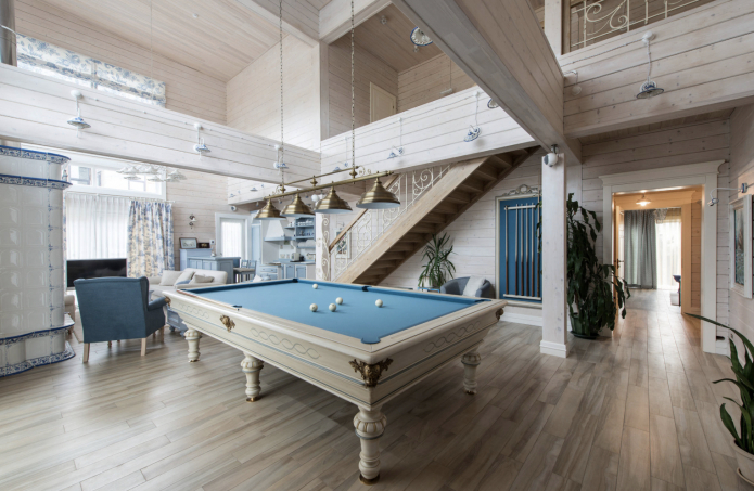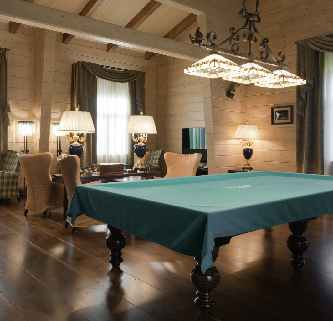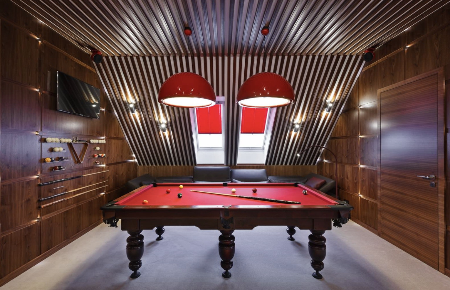 - Еще один плюс - наибольшее из возможных удаление от жилых комнат, ведь бильярд - довольна громкая игра, перестук шаров и удары по ним могут мешать отдыху тех членов семьи, которые не заняты игрой.