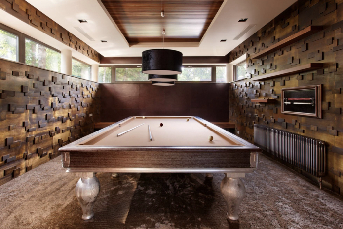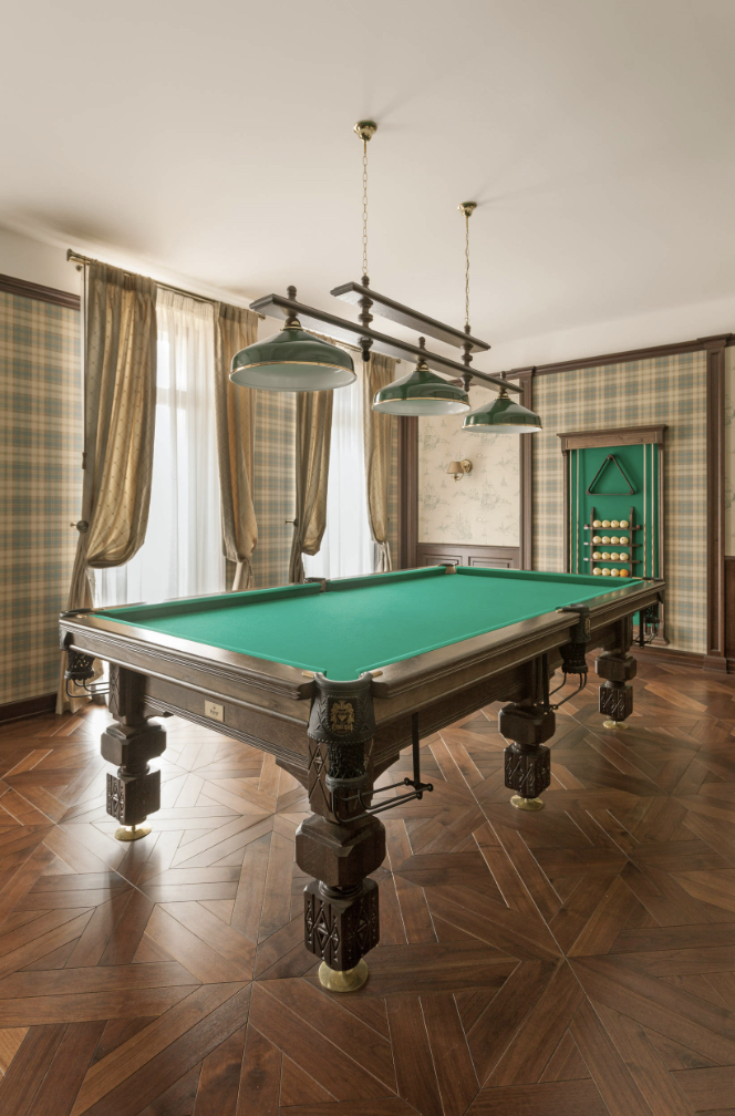 В связи со спецификой бильярдной комнаты выбору материалов для ее отделки уделяется особое внимание.