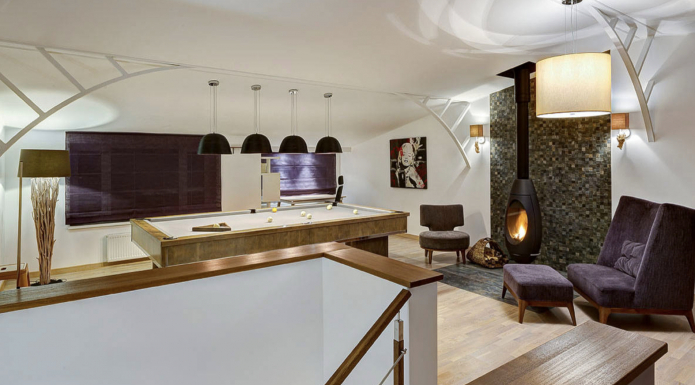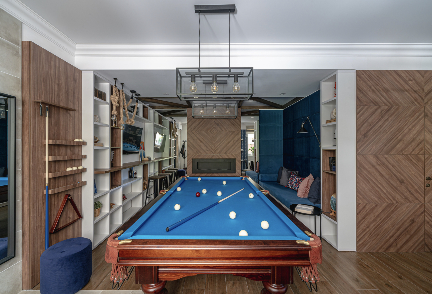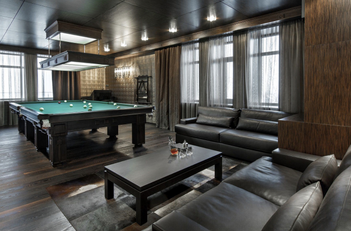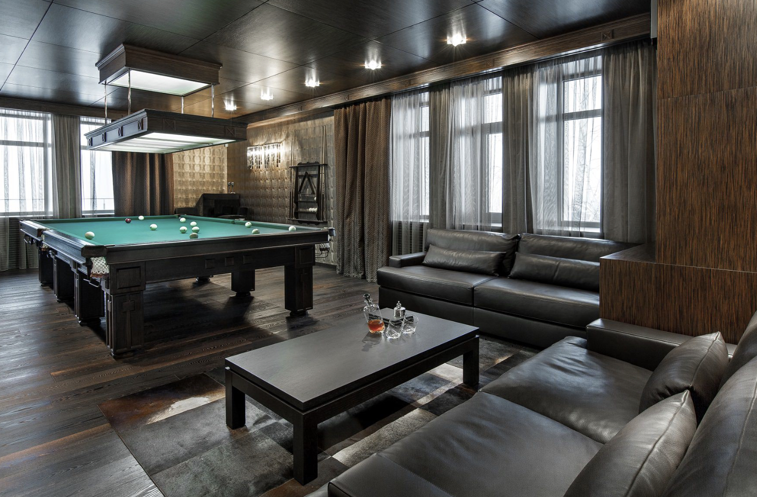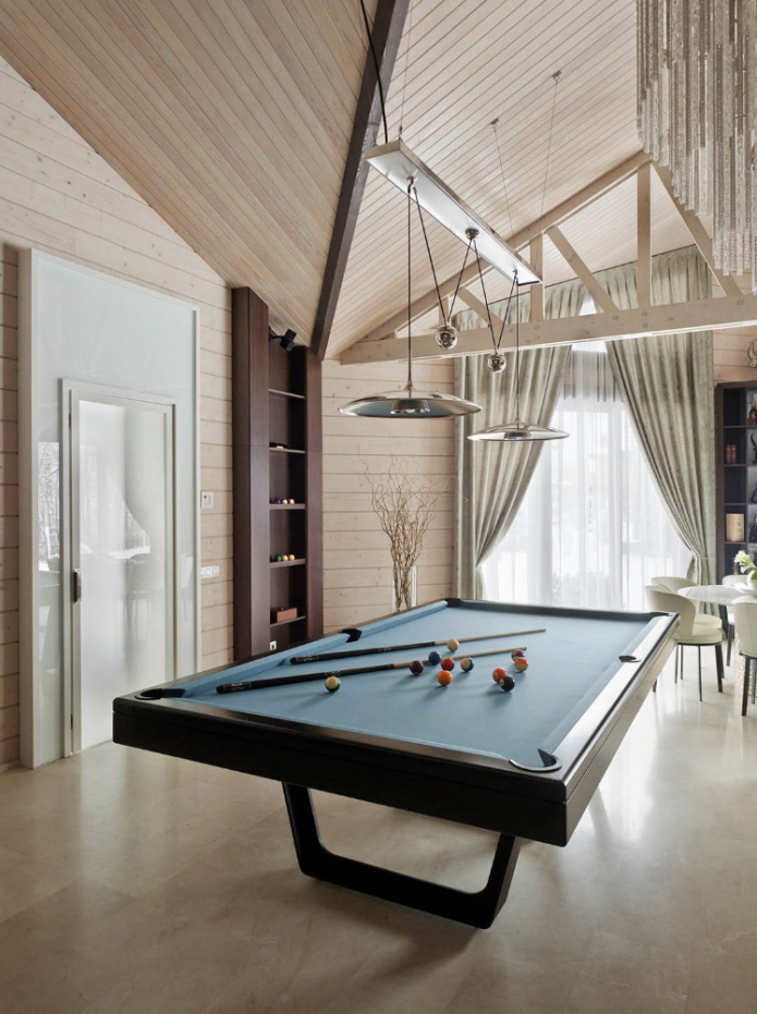 - Кроме того, бильярдную можно использовать как гостевую комнату, особенно при соответствующих планировке и оформлении.