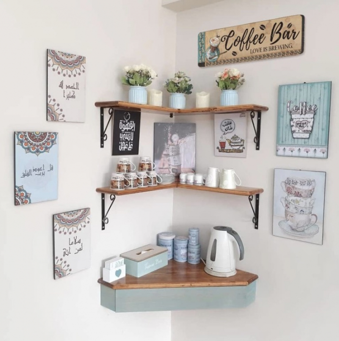 Являются не только декоративным, но и практичным элементом интерьера. На них можно расставить разноцветные баночки со специями, стаканы, чашки, красивые мелочи или сувениры, что предоставит отличную возможность существенно сэкономить пространство.