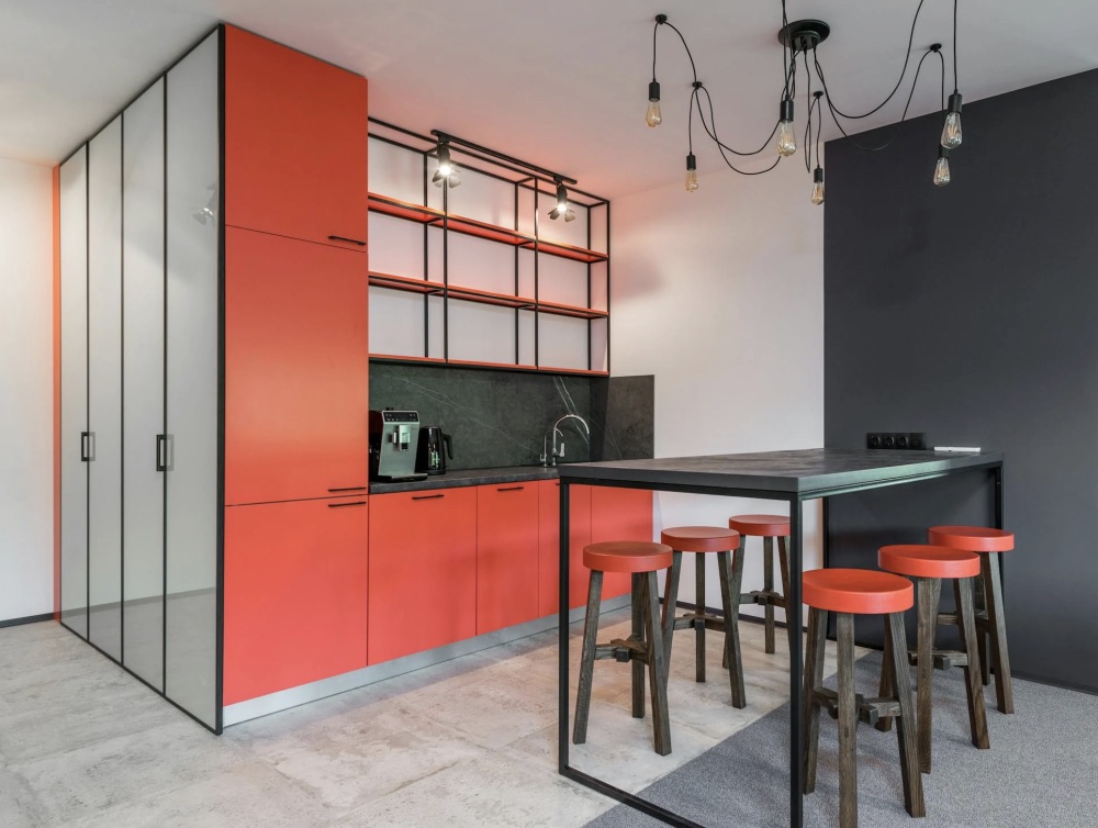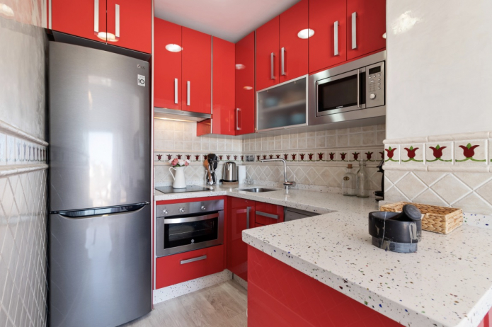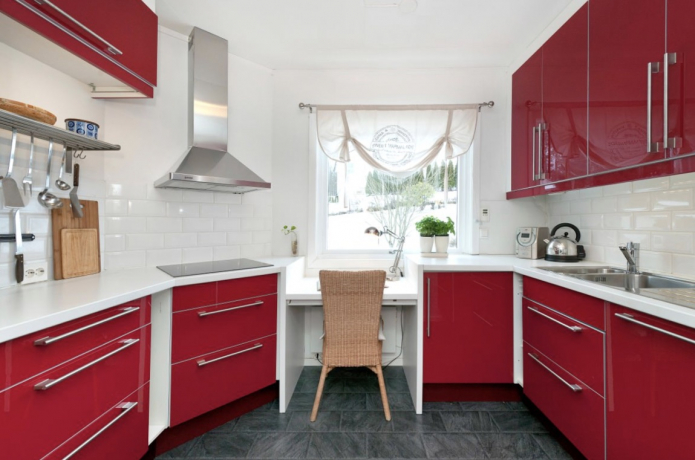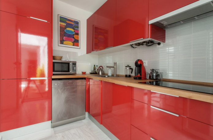 В маленькую кухню можно подобрать красный гарнитур при условии соблюдения некоторых правил: