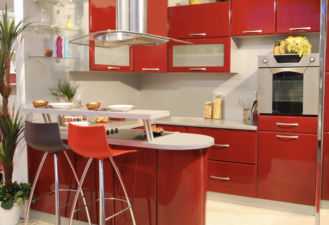 Красный кухонный гарнитур выбирают исходя из размера помещения и количества проживаемых людей.