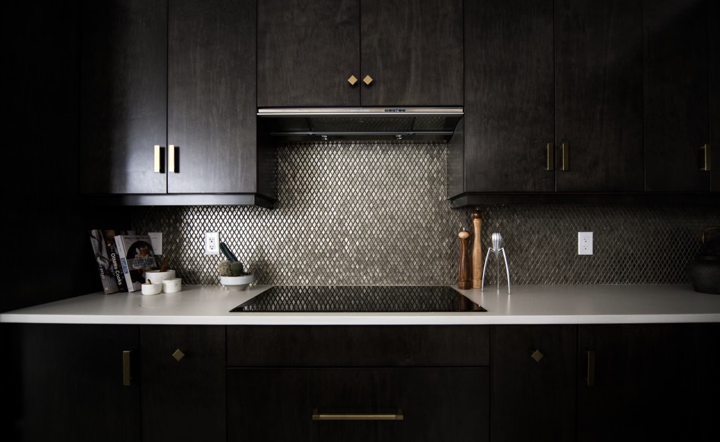 Фартук для кухни из мозаики, фрагменты которого выполнены из металла, открывает огромные возможности для дизайнера. Поверхность элементов может быть блестящей или матовой, иметь рельеф, насечку, выпуклый узор. Цветовое решение – золото, старая бронза, блестящий хром или серебристый титан.