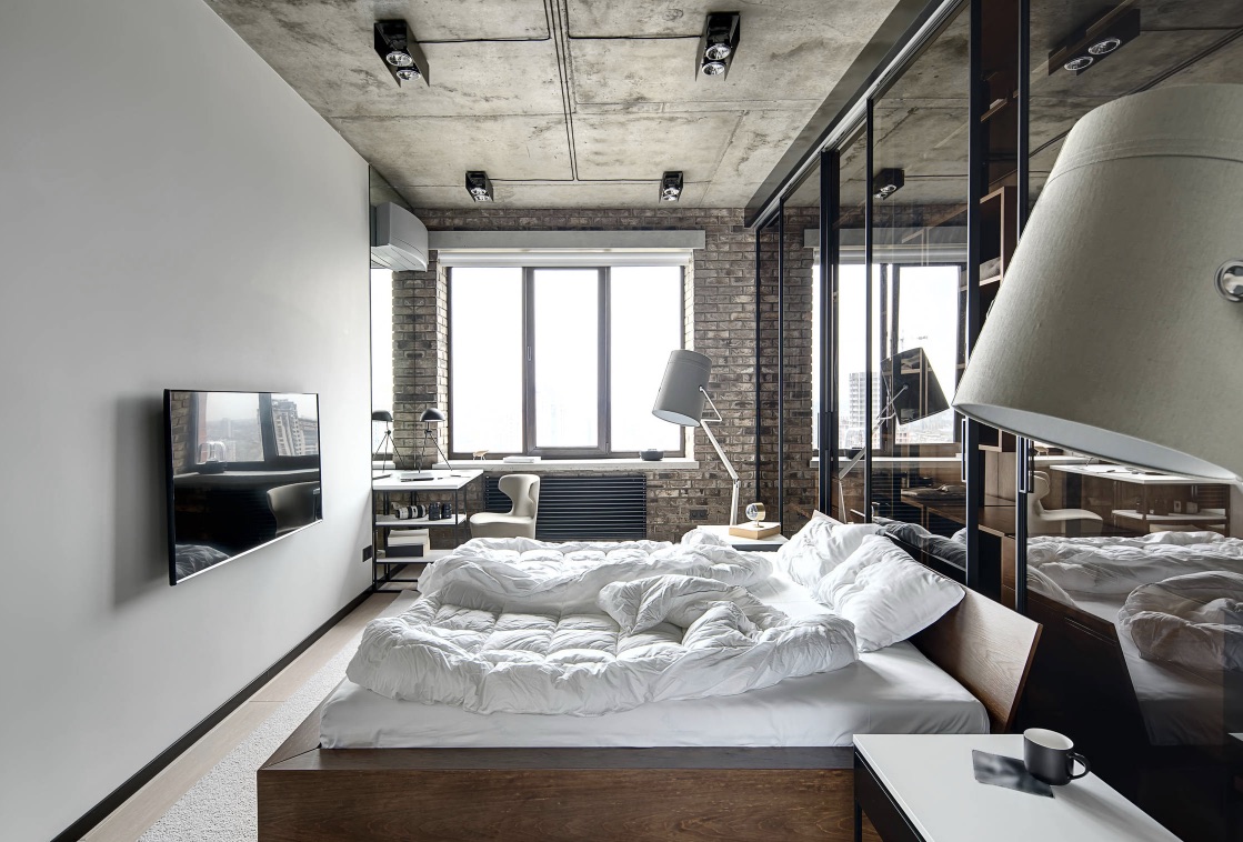 Интерьер в стиле лофт имеет незавершенный и необжитой облик, который придает спальне особого шарма. Промышленно-урбанистический дизайн прекрасно подходит для творческих и свободолюбивых натур.