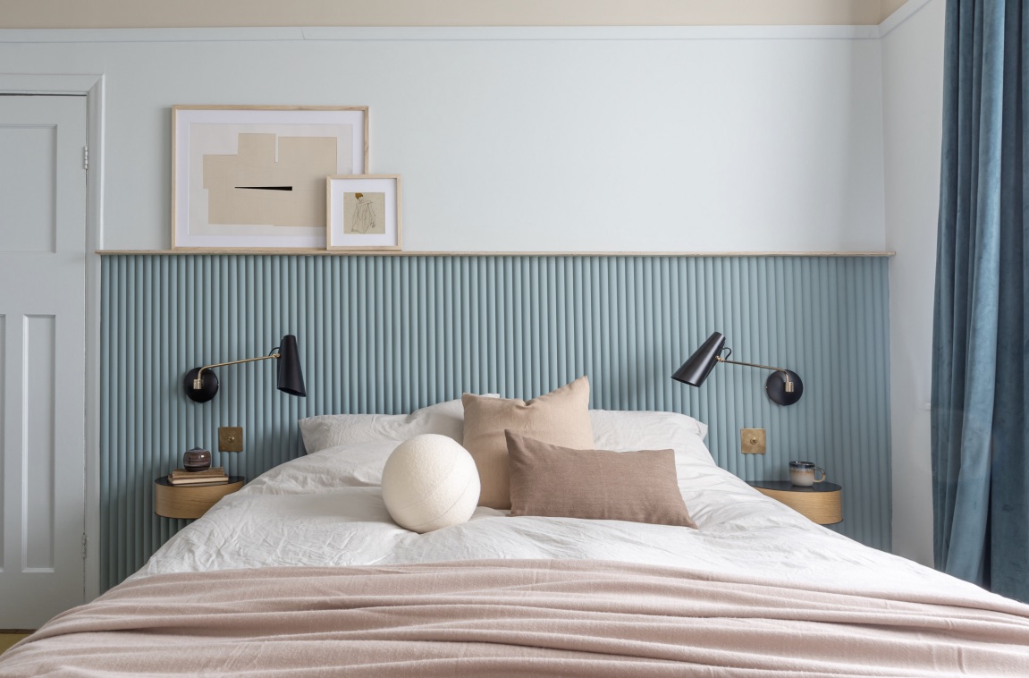Это сочетание понравится тем, кто ждёт от интерьера спальни свежести и прохлады. Лучше всего комбинация смотрится в морском стиле, но она также будет уместна и в классике, и в контемпорари.