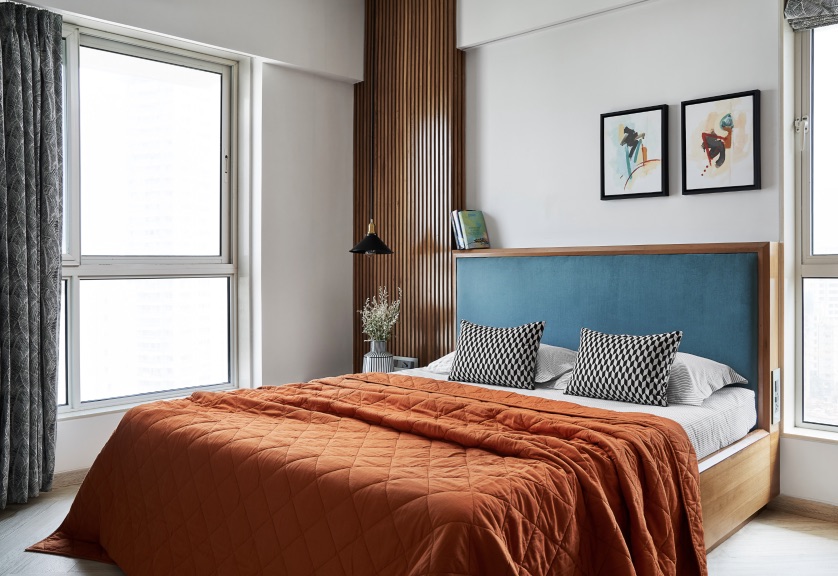 Успех подобного сочетания гарантирован только при правильном соблюдении пропорций. Белый должен выступать объединяющим фоном, а приглушённый синий и матовый оранжевый – деталями, задающими настроение. Два оттенка гармонируют между собой, только если синий имеет тёплый подтон.
