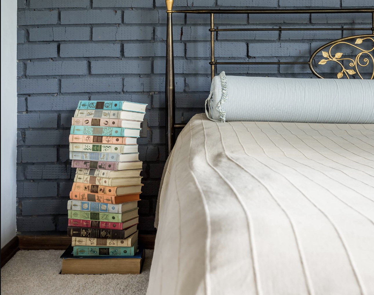 Просто и со вкусом можно оформить интерьер, если приспособить вместо тумбочки стопку книг. Такая конструкция конечно не сможет похвастаться многообразием функций, но зато любимые книги всегда будут «под рукой».