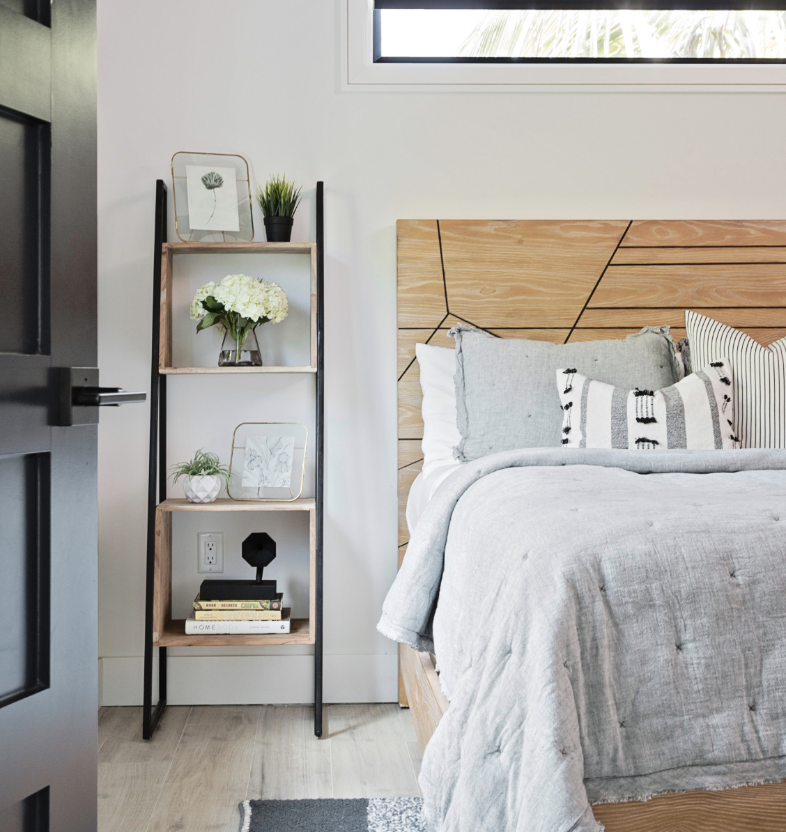 Небольшая лестница может стать стильным и практичным предметом декора. На компактных мини-полках уютно разместятся книжки, которые вы читаете перед сном или мобильный телефон. Кроме этого, на неё можно поставить статуэтки, цветочные горшки, подсвечники, топиарий или лампу.