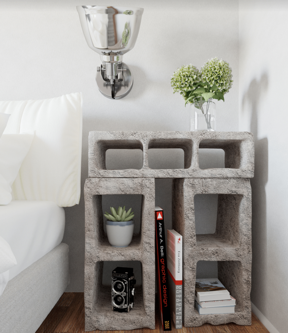 Уникальность такой конструкции состоит в том, что она полностью мобильна. Вы сможете выставлять эти стройматериалы как захотите, постоянно меняя дизайн. Так как блоки имеют перегородки, то внутрь можно будет сложить различные аксессуары и другие нужные предметы.