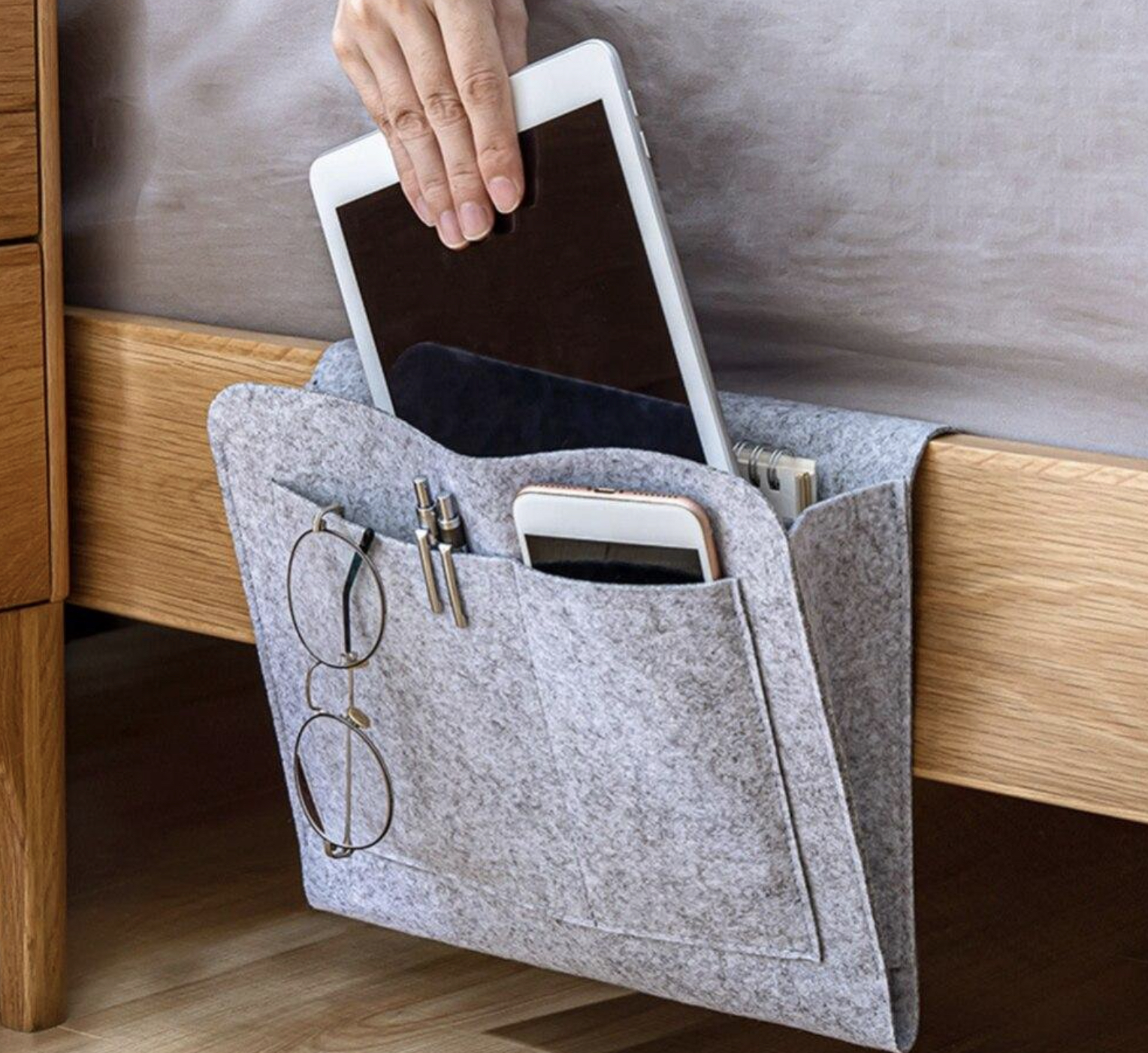 Если вам нравится минимализм и вы не хотите нагружать пространство громоздкими вещами, то можно приобрести подвесной органайзер. Эта штука крепится прямо к кровати и занимает мало места.